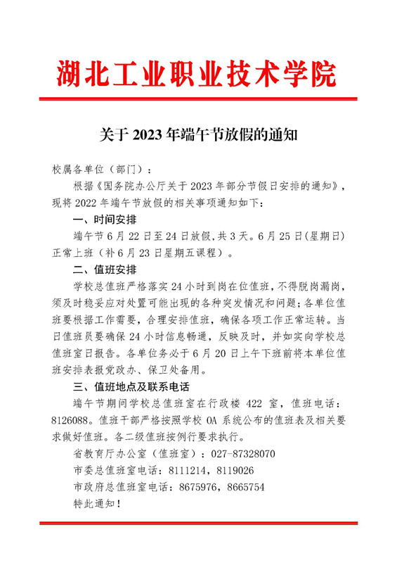关于2023年端午节放假的通知