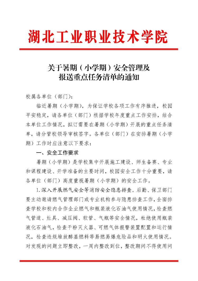 关于暑期(小学期)安全管理及报送重点任务清单的通知